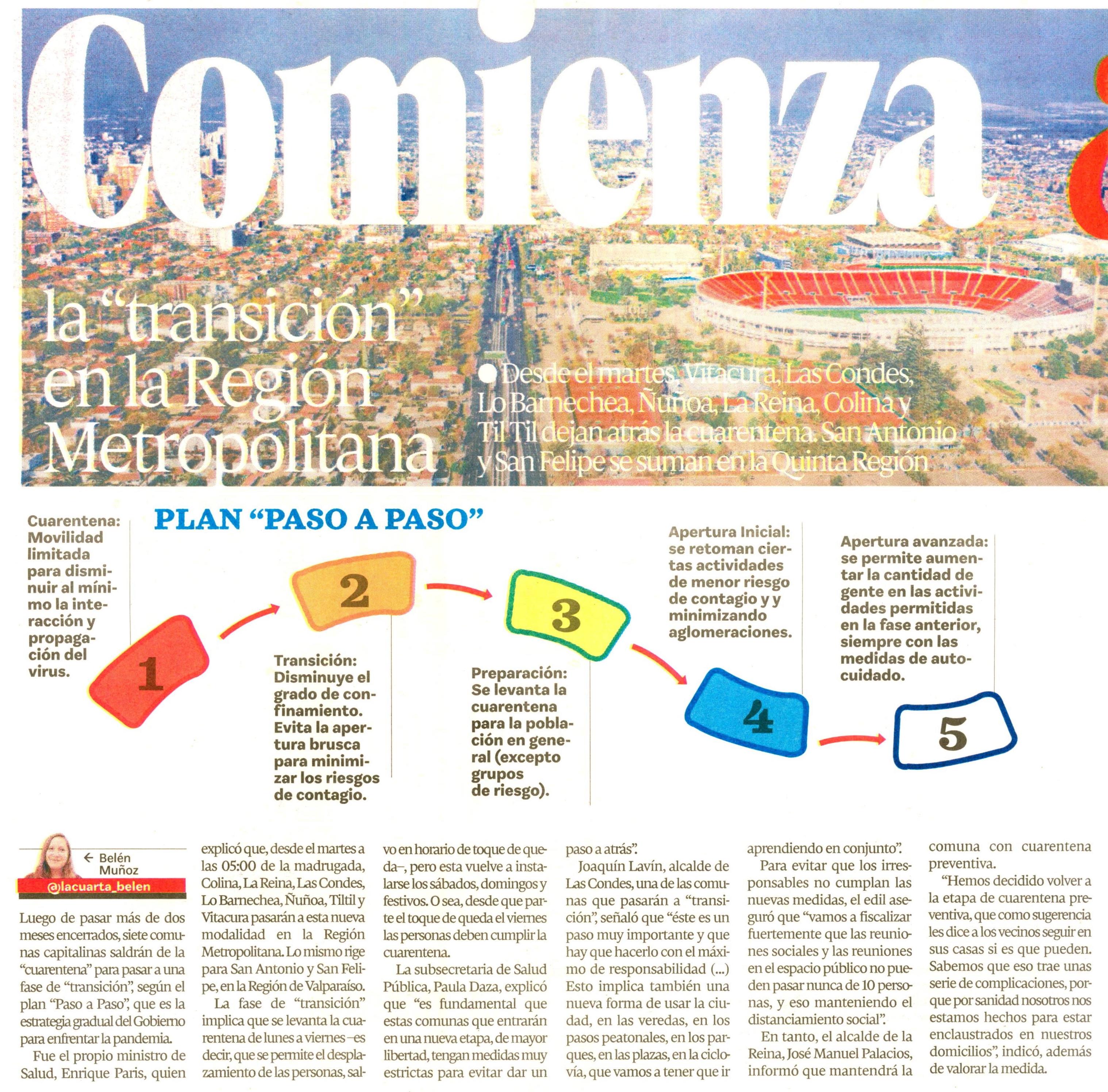 Y en que debido a la baja de casos anunció que siete comunas pasaran a la fase 3 del plan Paso a Paso desde las 500 del próximo miércoles 2 de septiembre. Durante 2021 este Plan ha tenido actualizaciones considerando factores como el avanzado proceso de vacunación el fortalecimiento de la infraestructura sanitaria la estrategia de testeo trazabilidad y aislamiento y una. Las comunas de Independencia Las Condes Santiago y San Bernardo pasarán a la Fase 4 de Apertura Inicial. Las comunas que pasan a etapa.